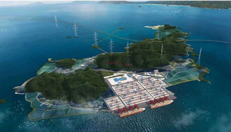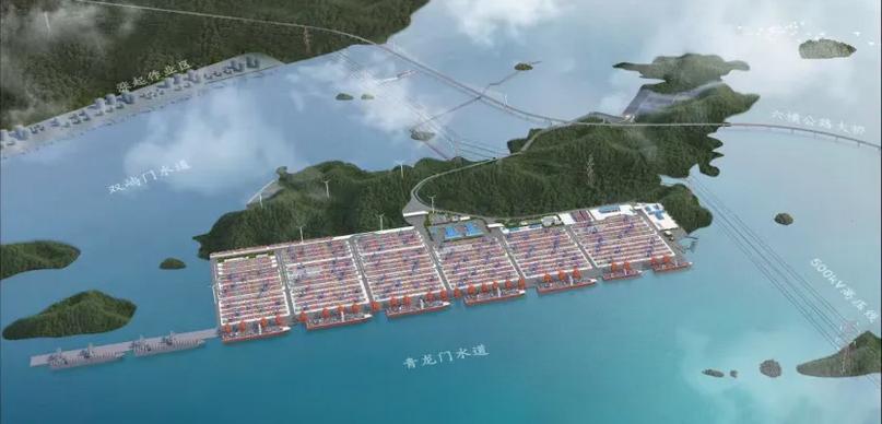 本次开工的为项目一期工程,建设内容包括2个20万吨级集装箱泊位及相关陆域配套设施,利用岸线950米,设计年通过能力201万标准箱,可靠泊目前世界上最大的集装箱船,预计于2027年年底与六横公路大桥二期同步建成投用。