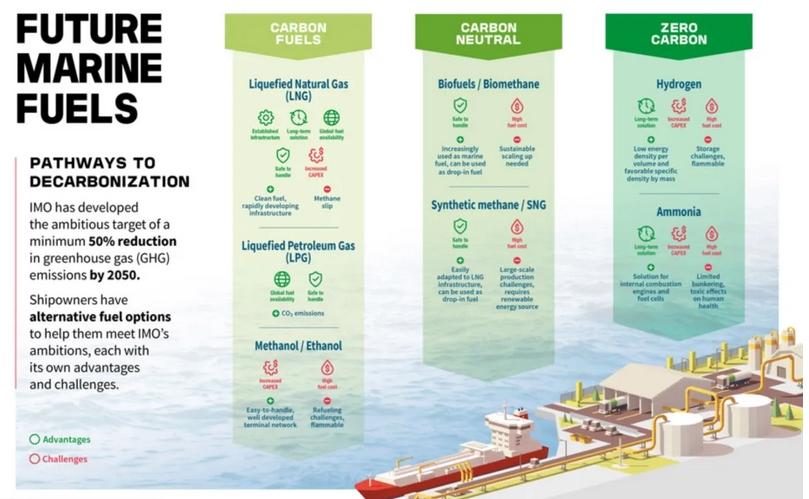 截至目前,该框架的诸多细节仍未达成共识,例如对 “先行践行清洁燃料的企业” 的奖励力度、哪些燃料可被认定为 “清洁燃料”、燃料全生命周期排放评估的明确标准,以及面向发展中国家的资金管理与使用方式等。电子燃料(e-fuel)生产商亦在呼吁IMO对以绿色氢为基础的燃料给予专项激励,因为这类燃料相比LNG和第一代生物燃料目前激励不足。
