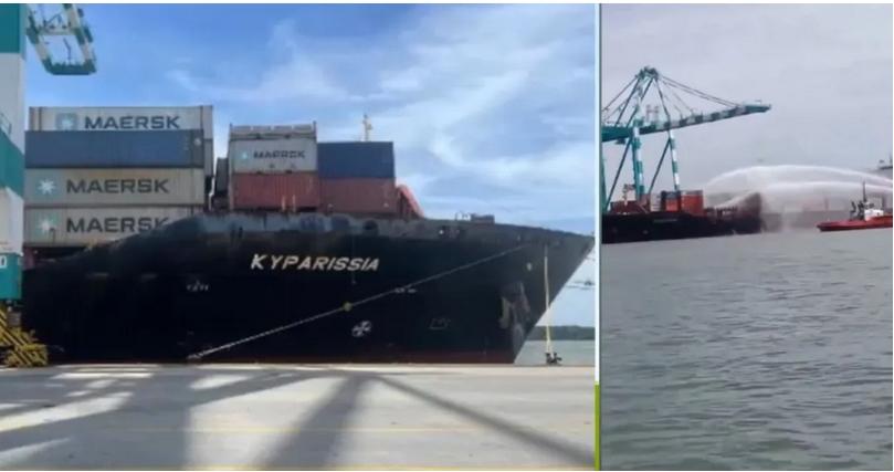 据了解,发生事故的集装箱船为“Kyparissia”轮,该船由Costamare公司所有并管理,目前以期租形式租赁给马士基(Maersk)运营。当地时间11月7日正午,该轮在丹戎帕拉帕斯港靠泊期间突然起火。事故发生后,港口消防船率先展开灭火工作,随后州消防与救援部门的救援队伍也赶抵现场进行支援。