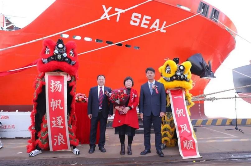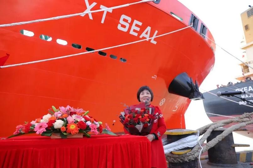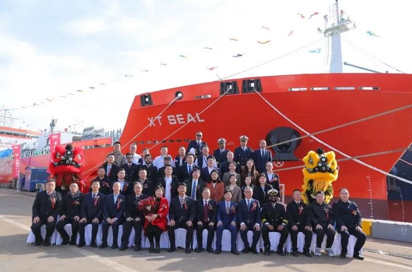 12月9日,兴通海运股份有限公司25,900载重吨甲醇双燃料不锈钢化学品船“兴通海豹”轮命名暨交船仪式在江苏靖江隆重举行。作为国内该船型首制船“兴通海狮”轮的姊妹船,“兴通海豹”轮是公司目前在建的6艘该系列船型中的第二艘成功交付的船舶,标志着兴通股份绿色高端船队建设迈入稳定、高效的批量交付新阶段。