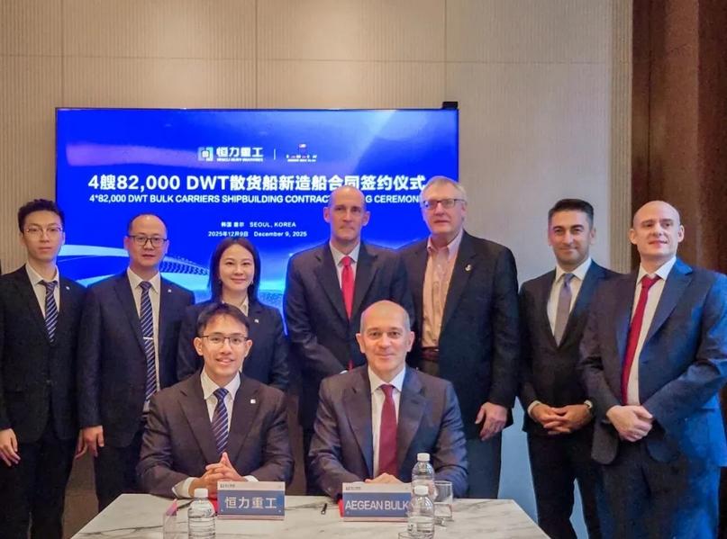 近日,恒力重工在全球航运市场再获重要突破。公司宣布已与希腊知名船东 CAPITAL、AEGEAN BULK 以及挪威船东 UTHALDEN 等多方达成协议,正式签署了共计 8 艘新造船的建造合同。