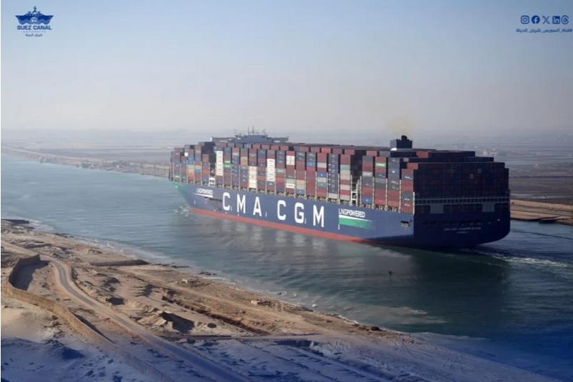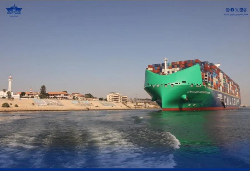 当地时间本周二,达飞集团旗下、全球最大集装箱船之一的 “CMA CGM Jacques Saade”轮 顺利完成苏伊士运河南向通航,执行从摩洛哥驶往马来西亚的航程。该船全长400米,载箱量约23,000TEU,采用LNG动力,是过去两年来通过苏伊士运河的最大型集装箱船。同日,载箱量超过15,500TEU的 “CMA CGM Adonis”轮也完成北向过境。