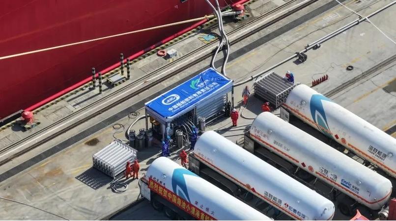 12月27日,中国船燃联合中海油在深圳小漠港成功完成国际航行船舶“BYD JINAN”轮的车对船 LNG 燃料加注作业。此次作业是国内首次为国际航行船舶提供车对船模式的 LNG 燃料补给,标志着中国船燃在国际航行船舶 LNG 加注领域实现新突破,为全球航运业低碳转型标注了“中国坐标”,提供了“中国方案”。