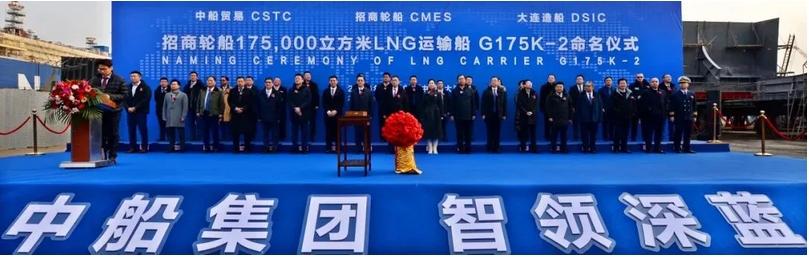1月28日,招商轮船在大连造船批量订造的“17.5万立方米液化天然气(LNG)运输船项目”2号船交船暨命名仪式在大连举行,该船交付后将服务于长约租家中化石油的LNG运输需求。招商轮船总经理王永新为新船命名并讲话,招商金控副总经理孙献为新船砍缆。大连造船总经理林吉明、中化石油副总经理夏尚分别在仪式上致辞。
