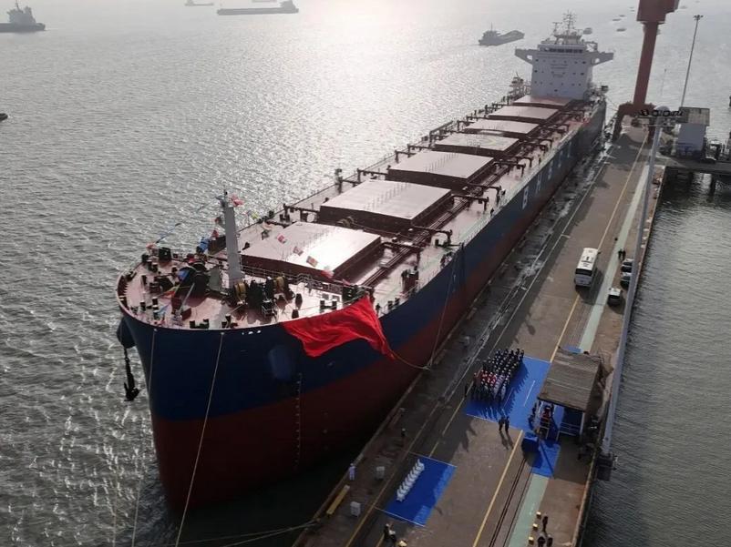 2月3日,河北交投集团所属渤海远洋公司与民生金租联合定购的8.2万吨散货船HT82-405交船暨命名仪式在江苏镇江新韩通船厂码头举行。