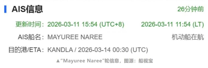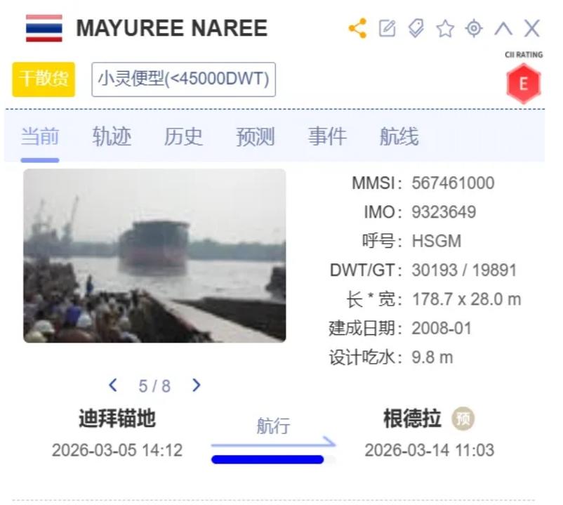 市场消息显示,遇袭船舶为泰国船东珍宝航运(Precious Shipping) 旗下约3万载重吨散货船“Mayuree Naree”轮(2008年建造)。