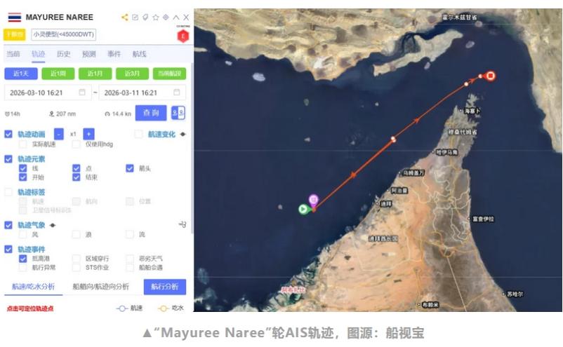 珍宝航运董事总经理 Khalid Hashim 随后证实,“Mayuree Naree”轮在压载航行状态下,于阿曼专属经济区水域、接近霍尔木兹海峡入口处遭到袭击。