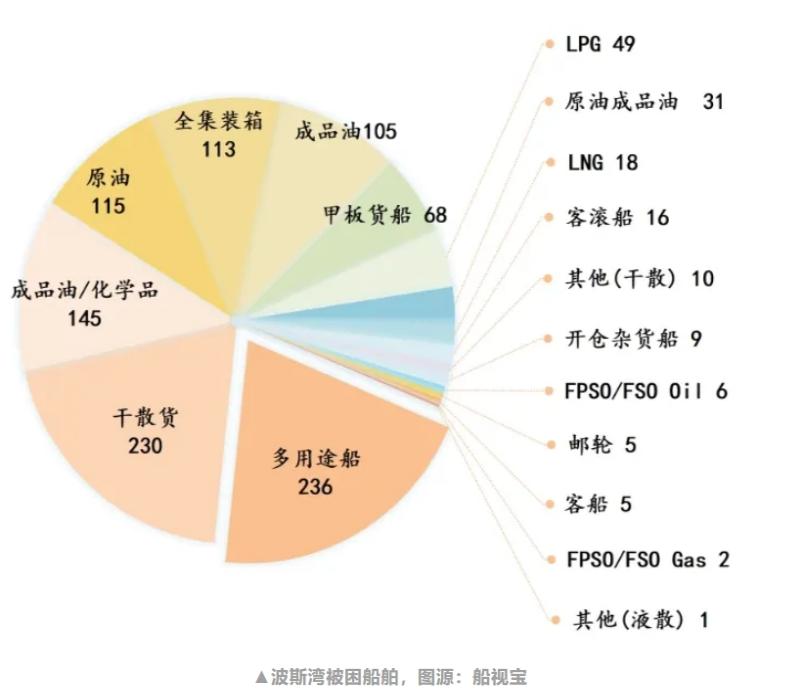 根据中远海科旗下船视宝最新统计,当前共有1164艘商船被困波斯湾。被困船舶中,全集装箱船113艘,干散货船230艘,原油/成品油/液化石油气等油品相关船舶累计约450艘。