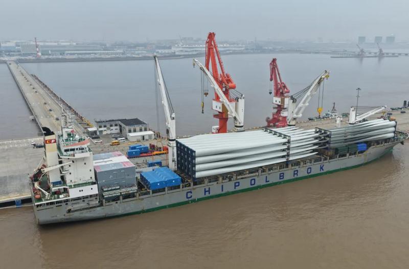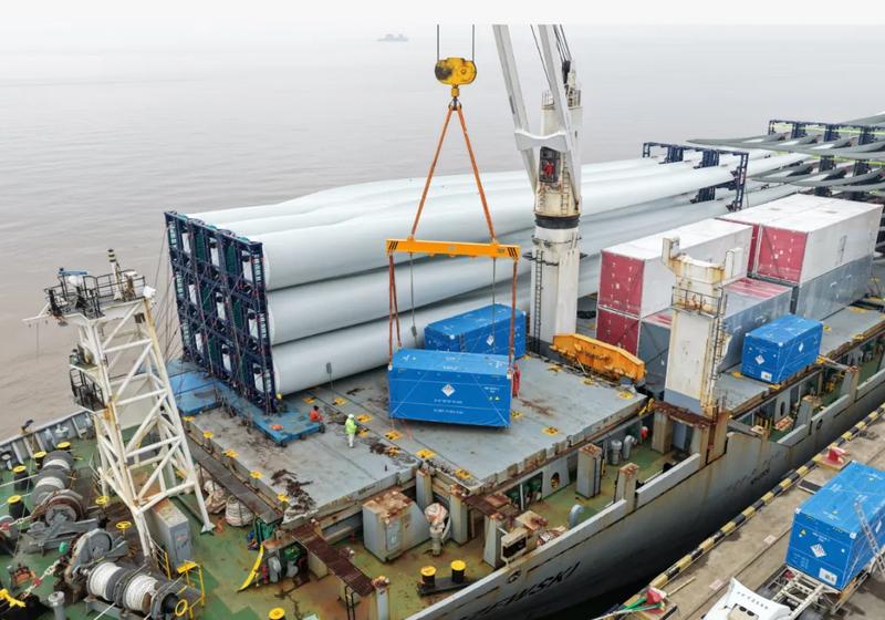 3月23日,中波公司3.1万载重吨重吊船“克拉舍夫斯基轮”满载货物离开上海南港,甲板装载的中国出口风电设备及46台储能柜,标志上海南港首次成功发运储能柜。