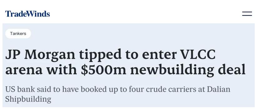 全球金融巨头摩根大通正式进军超大型油轮(VLCC)资产领域,成为本轮油轮新造热潮中又一跨界入局的重磅玩家。