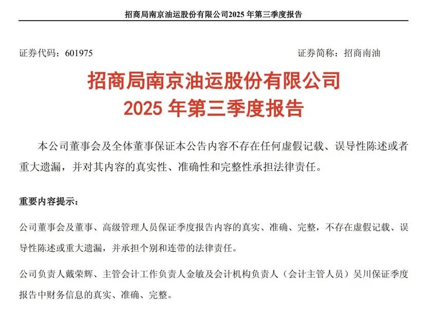 招商轮船第三季度净利润11.75亿元,同比增长34.75%