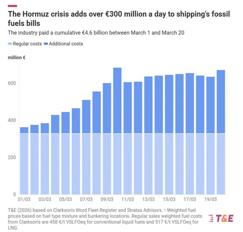 全球航运公司燃料支出激增:一天多花3.4亿欧元