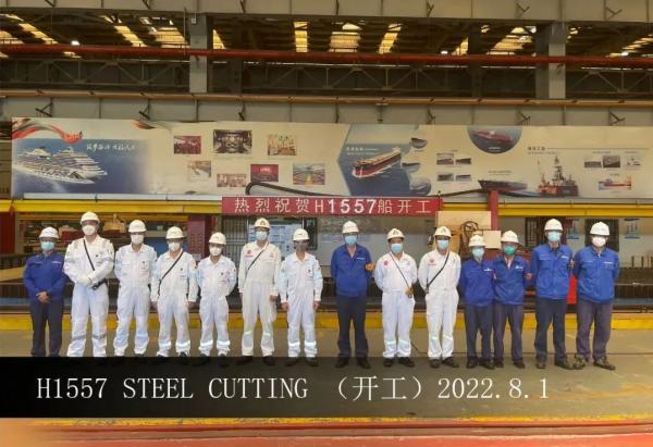 外高桥造船为新加坡Sea Consortium公司建造的7000TEU集装箱船H1557开工