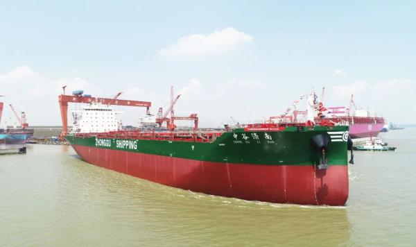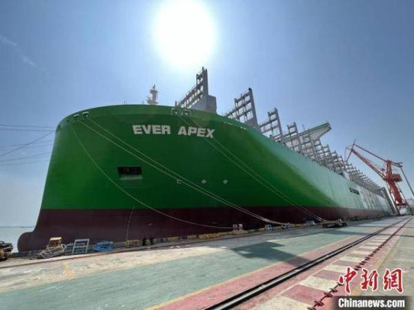 中国船级社检验的4600箱集装箱船首制船“中谷济南”轮出坞