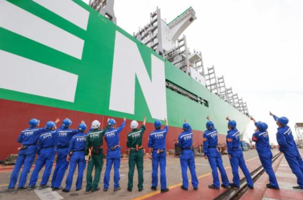 两艘24000箱超大型集装箱船同日入坞!沪东中华造船公司加速复工复产